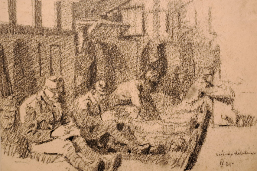 A második terem egy sokkal kényesebb témával foglalkozik: a műalkotó és az I. világháború frontvonalain uralkodó légkör viszonyrendszerével. Nem tudhatjuk, hogy Prohászka mekkora szerepet vállalt a Monarchia hadseregén belül működő sajtófőhadiszálláson, de képein igyekezett megörökíteni a front békés pillanatait is. Grafit- vagy széntechnikával készült rajzain olyan témák jelennek meg, melyek a magánélet intimitását érintik (családi látogatás, levelet olvasó honvédkatonák, vasárnap délutáni pihenés), és igyekeznek emberközeliek maradni (mandolinon játszó honvédtiszt, Prohászka Nándor).
