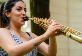 Napközben a többség egyetemi órákon vagy a munkahelyén van, esetleg elvonulva tanul a közeledő megmérettetésekre – a szorgalmi időszak végén járunk –, egyeseknek pedig már a vizsgáik is megkezdődtek. Az udvar felől szaxofonjáték hallatszik. Kíváncsian indulok el a hang irányába, felfedezni, mit rejt a kollégium hátsó szárnya. Pusomi Viktória, a Zeneakadémia mesterszakos hallgatója gyakorol az egyik közösségi teremben a délutáni vizsgájára. A szomszédos könyvtárban Jankó Attila ELTE-s jogászhallgató tételeket dolgoz ki, így csak röviden nézek körbe, hogy ne zavarjam.