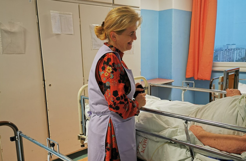 Az osztályon egy hosszú, véget nem érő folyosó vezet végig. Az ott dolgozók mind-mind mosolyogva és kedvesen fogadnak, pedig már tudom, hogy amit én csak pár órán át látok és érzek, az nekik ott a mindennapi életük része. A lelkiéletük része. Önkéntes beteglátogatóként és hitoktatóként azt mondom a hivatásomra, hogy jutalmam az élettől, hogy ezt tehetem. Azon gondolkodtam, hogy az ott dolgozók miként élik ott meg a munkájukat. Nagyon kedvesek, segítőkészek az osztály orvosai is. Listát kapok, hogy kihez menjek mindenképp; ki az, akinek a legnagyobb szüksége van rám; kit látogattak régen; ki az, aki szomorúbb. Sőt azt is elmondják, hogy mire kell figyelnem, hogy ki az, akivel csak németül értek szót; ki az, aki halkan beszél, ezért jobban figyeljek.