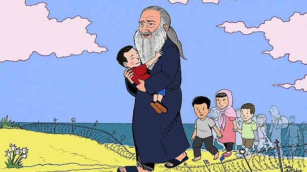 Görögország-szerte jól ismerték a hatalmas szakálla és szálfatermete miatt is kiemelkedő ortodox papot, Efsztratiosz Dimou atyát, ismertebb nevén Papa Sztratiszt, aki Leszbosz szigetén teljesítette egyházi szolgálatát. Életének utolsó éveit teljes egészében a menekültek megsegítésének szentelte; Ölelés nevű csoportja, melyet helyiek segítségével hozott létre, hosszú évek óta segíti étellel, ruhával és szállással a szigetükre érkező menekülteket.