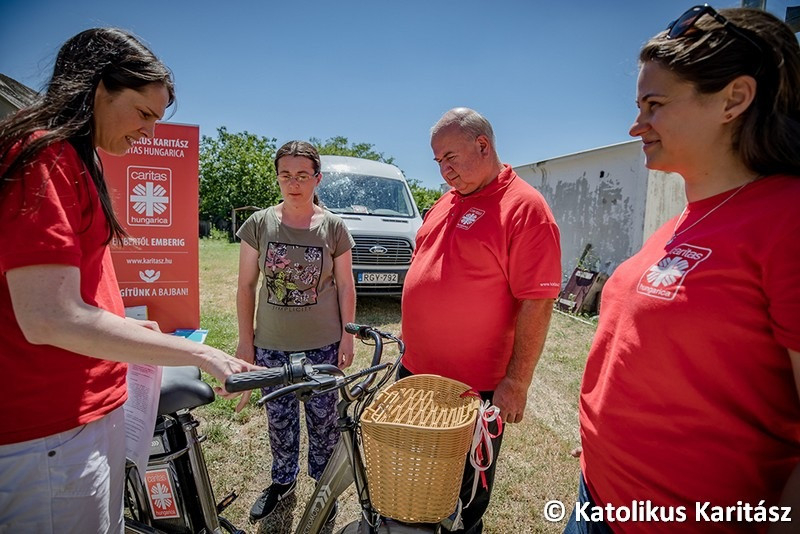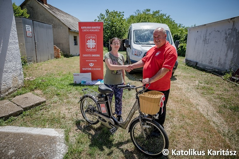 Az elektromos biciklin kívül Écsy Gábor, a Katolikus Karitász országos igazgatója babamérleget, légzésfigyelőt és egyéb nélkülözhetetlen gyógyászati segédeszközöket adott át a kisszentmártoni védőnőnek, akivel a szervezet segítői a későbbiekben is szorosan együttműködnek majd.