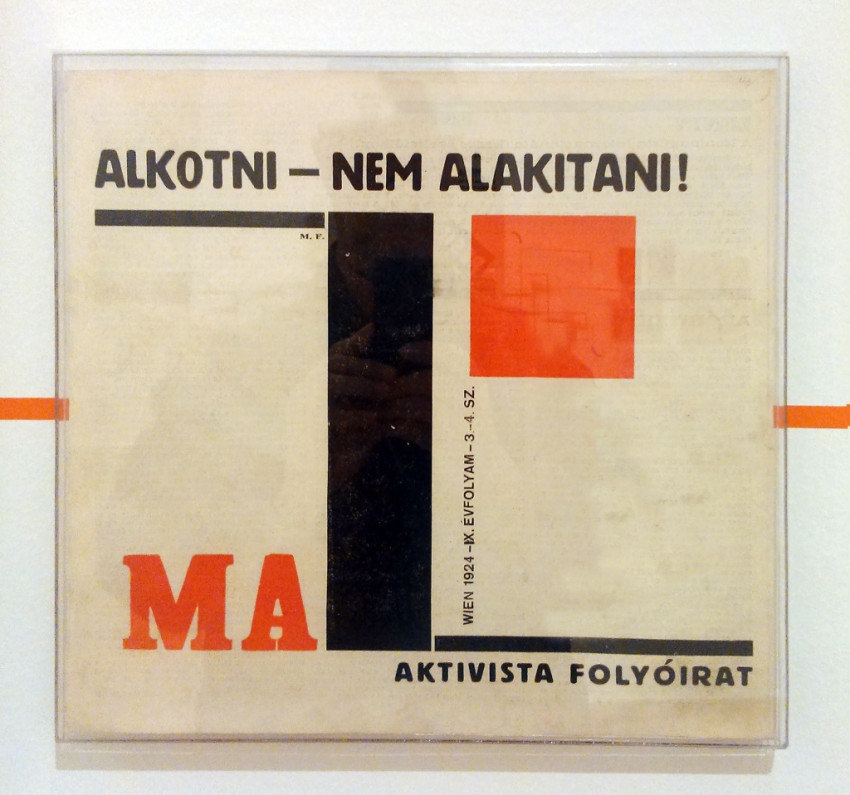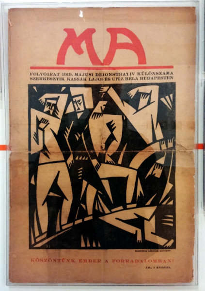 Vaskos, nem túl hosszú piros és fekete színű léniák, groteszk, talp nélküli, kövér (szaknyelven fett) betűk jellemzik a MA című folyóirat egykori címlapjait. Négyzetek, körök, egymásra merőleges vonalak és legfeljebb egy nagyméretű grafika, általában fametszet illusztrálja az első oldalakat. Rendkívül szokatlan borítókép lenne ez még ma is, nemhogy abban az időben, az 1910-es, 20-as években. Kemény és brutális megjelenítés volt, egy újnak hirdetett világ kezdete az avantgárd első évtizedeiben. 1909-ben jelent meg az első futurista kiáltvány, amely többek között azt hirdette, hogy „Egy versenyautó, amelynek karosszériáját kígyóhoz hasonló, vastag csövek díszítik (…) egy bömbölő autó, amely kartácsként száguld, szebb, mint Samothraké-i Niké” (szobra).