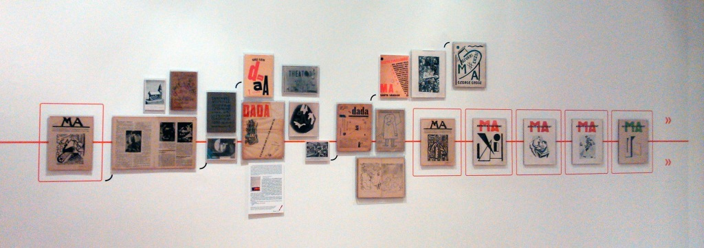 A hihetetlenül sok címlap, újságcikk és egyéb dokumentum közül nehéz bármit is kiemelni, annyi az érdekesség, az olvasni- és látnivaló. Mindenképpen meg kell azonban említenünk két dolgot: az egyik a dada, a másik a képarchitektúra. A dadaizmus az esetlegességet hirdette, tagadta a tudatos kompozíció kialakításának szükségességét. Maga a szó, dada, ami annyit jelent: lovacska, a lényeget fejezi ki, a véletlenszerűséget. Azt a jelenséget, amikor egy falevél lehull a fáról, és senki sem tudja, hol ér földet. Az ebben az időben készült plakátok és újságcímlapok tipográfiája is ezt üzeni. Jó néhányat láthatunk közülük a Petőfi Irodalmi Múzeum mostani kiállításán.