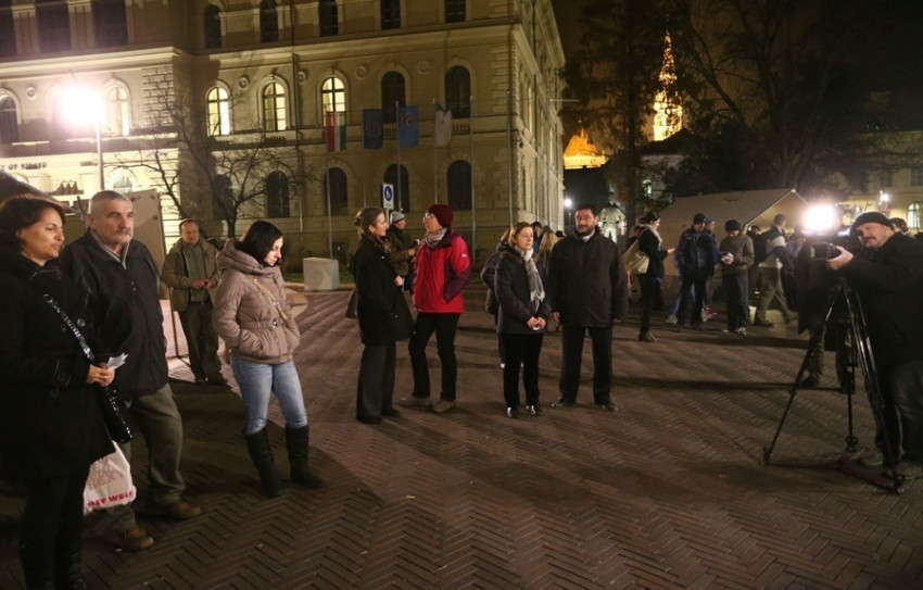 A téren meleg étellel, zenével, adományokkal és néhány jó szóval várták a fedél nélkülieket. „Bár tudnám, hova, de hova, de hova, de hova megyek” – játszotta az Illés együttes klasszikusát a Dugonics téren verbuválódott zenekar szerda este. Az őket hallgató hajléktalanok tenyerükkel, talpukkal követték a ritmust, jó hangulatukban talán egy pillanatra meg is feledkezve arról, hogy ezt a kérdést minden reggel felteszik maguknak. A Szegedi Katolikus Egyetemi Lelkészség által immár tizedik alkalommal meghirdetett Szolidaritás Éjszakája nem oldja meg a hajléktalanok gondjait, de nem is az a célja. Egy lehetőség csupán, hogy a téren átsétáló emberek belenézhessenek azokba az arcokba, melyek láttán a legtöbbször inkább elfordítják a fejüket.