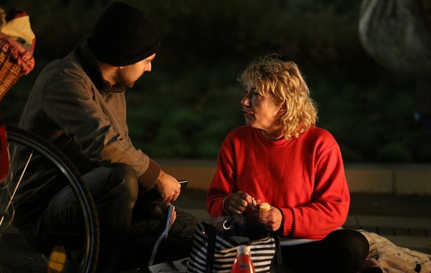 Rácz Béláné a tűz mellett, kabátjára ülve fogyasztotta el a meleg vacsorát. Nemrég vált hajléktalanná, mint mondta, testvérével való viszonya addig romlott, míg másfél hónapja az utcára került, azóta él ott. „Higgye el, sokkal jobb nekem még az utcán is annál, minthogy állandóan veszekedjek. Boldog vagyok, megtaláltam a magam boldogságát” – mesélte. Ez pedig a Biblia, amiből kerékpárja kosarában több példányt is mutat, mindig magánál tartja őket. Kedélyesen, barátságosan mesél addig, míg lánya szóba nem kerül. „Egy gyönyörű »topmodell«, gimnáziumba jár, de letagad engem, nem szívesen mutatkozik velem. Szörnyű látni, amikor észrevesz, és elfordítja a fejét, átmegy az utca másik oldalára. A többiektől megszokja az ember, de a saját lányától sosem tudja” – mondta fátyolos hangon.