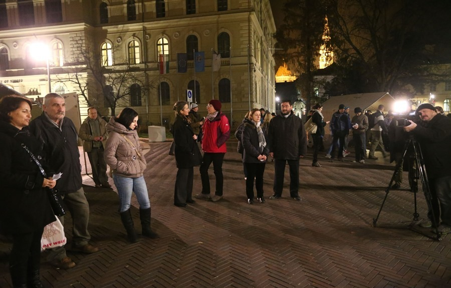 Paprikás krumplival és meleg teával is megkínálták a téren összegyűlt fedél nélkülieket, valamint az egyetemi lelkészség zenei műsorral készült számukra. Különböző hátrányos helyzetű csoportok képviselői „élő könyvtárat” nyitottak, „kikölcsönzőik” kötetlen témában beszélgethettek velük. Nyolc és kilenc óra között szituációs játékokat játszottak a szervezők, melybe a téren állókat is bevonták; majd Joó Magdolna, a Bajai úti hajléktalanszálló vezetője, Szabó Judit mentőorvos és az Alsóvárosi Szent Ferenc Konyha képviselője részvételével beszélgettek a hajléktalanok mindennapjairól. Az egyik felállított sátorban pedig adományokat vártak: tartós élelmiszert, ruhákat, pokrócokat, bármit, ami a hajléktalanoknak segít átvészelni ezt a nehéz időszakot.