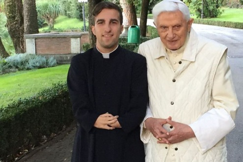 Nagyon hálás Benedek pápának, akitől az engedélyt kapta. Neki köszönheti hivatását is, amely a Madridi Ifjúsági Világtalálkozón érlelődött meg benne. 2015 októberében lehetősége nyílt arra is, hogy találkozzon az emeritus pápával. Megkérdezte tőle: „Szentatyám, mi a legfontosabb dolog ma egy pap számára?” Szinte be sem fejezhette a kérdést, Benedek pápa már válaszolt is: „A legfontosabb dolog egy pap számára, hogy barátságban legyen Krisztussal, és ezt a barátságot táplálja az imádsággal.”