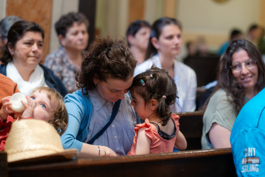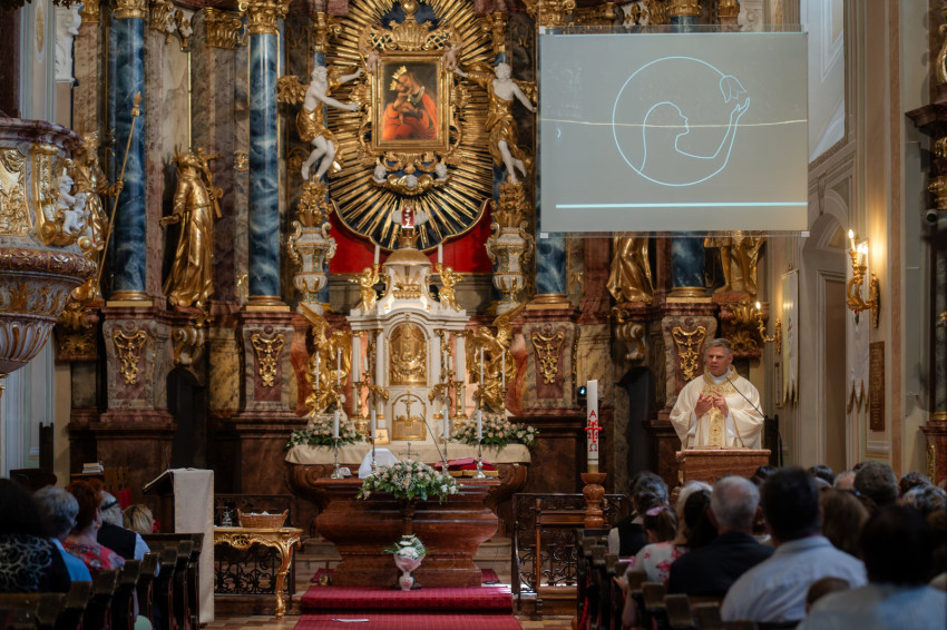 Nagy öröm volt, hogy a szokásosnál jóval több gyerek vett részt a szentmisén, de természetesen a padokban főként női lelkigyakorlatozók ültek. Mórocz Tamás kegyhelyigazgató szeretettel köszöntötte őket, és – mivel a szentmisét az online közvetítés mellett a Mária Rádió is élőben adta – kiemelten üdvözölte az erdélyi és a kárpátaljai testvéreket: „A távolság ellenére egy közösség vagyunk Krisztusban.”
