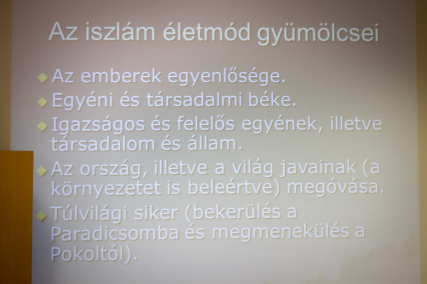 Az előadó nemcsak az iszlám vallásba tartott bevezetőt, de a gazdaságtan alapjait is ismertette.