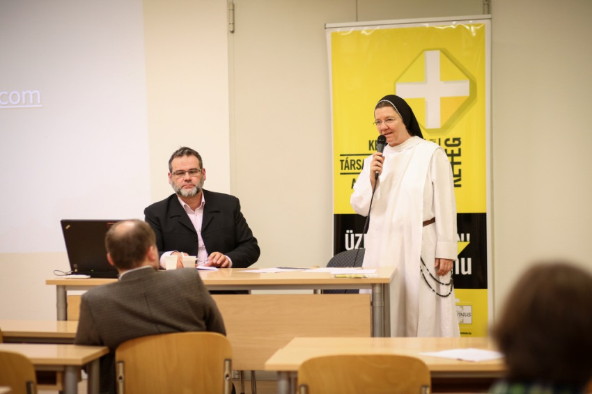 Baritz Sarolta Laura domonkos nővér, a képzés megalapítója és vezetője köszöntőjében elmondta, hogy Sulok Zoltánnal a tavaly júniusban a tihanyi apátságban megrendezett konferencián ismerkedett meg, amelyen a fenntartható fejlődésről volt szó; akkor határozta el, hogy felkéri előadónak.