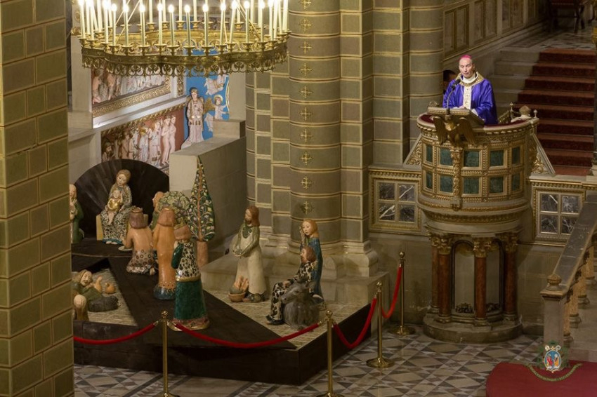 A nyilvános bemutató után a pécsi székesegyház új, betlehemi szoborcsoportját letakarták. A kompozíció a liturgikus szokásoknak megfelelően, december 24-től lesz látható.