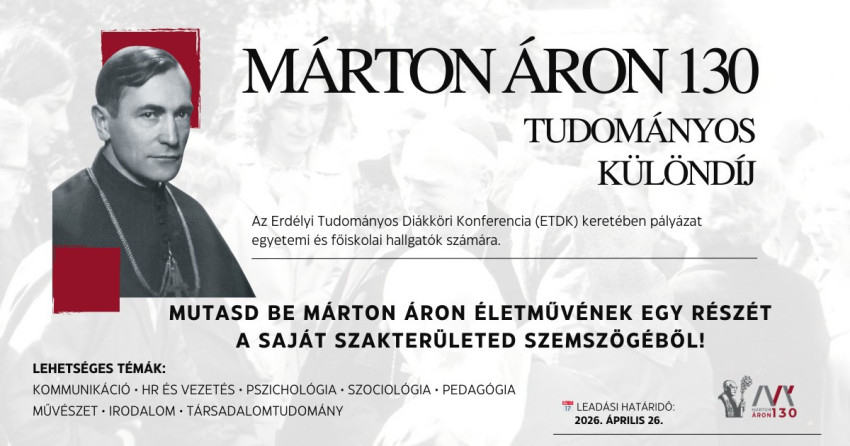 A felhívás különlegessége, hogy a pályázat nem önálló szekcióként jelenik meg az ETDK keretében, hanem a szervezők arra bátorítják a hallgatókat, saját tudományterületükön – legyen az bölcsészet, közgazdaságtan, kommunikáció, pedagógia, szociológia vagy bármely más szakág – foglalkozzanak Márton Áron személyével és örökségével. Így a pályázat lehetőséget nyújt arra, hogy a püspök életműve különböző tudományos nézőpontokból kapjon új értelmezést.
