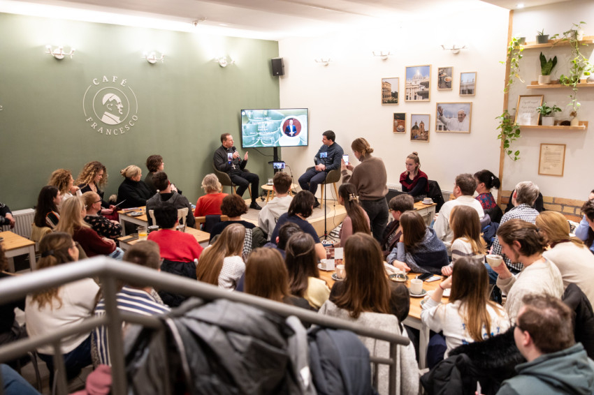 Rónaszéki János elsőként egy aktualitásra kérdezett rá: a Forráspont Facebook-oldalán kiposztolták, hogy a napokban Fábry Kornél Rómában járt, és Leó pápának átadott egy Forráspontra utaló tárgyat.