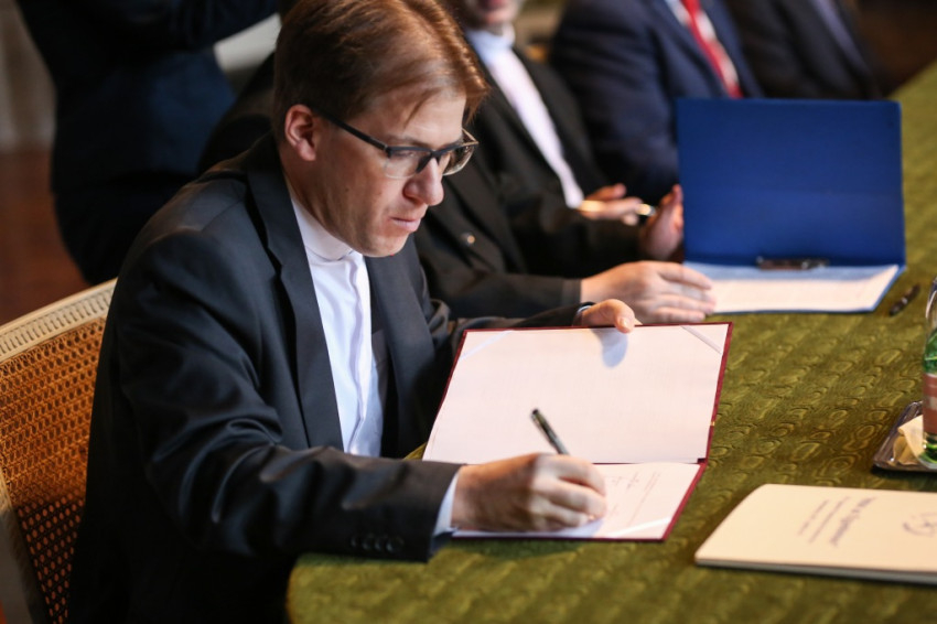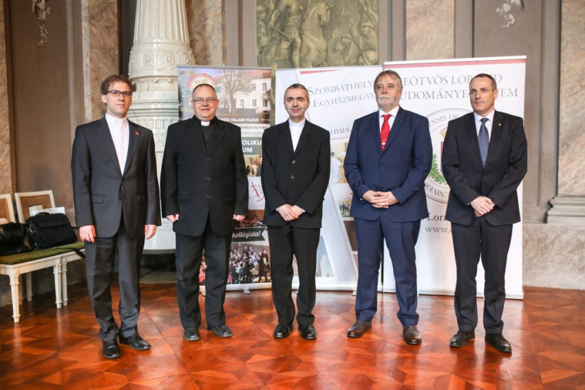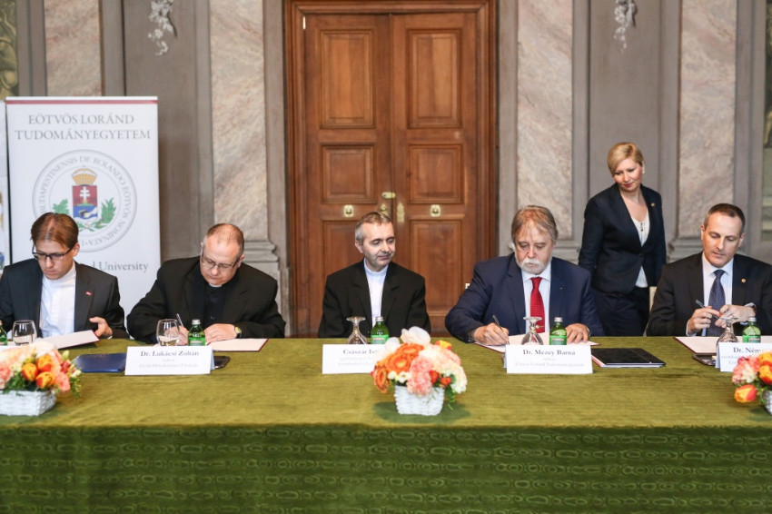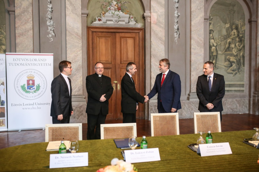 Császár István, a Szombathelyi Egyházmegye kormányzója, Mezey Barna, az ELTE rektora, Németh István, az ELTE szombathelyi koordinációs rektorhelyettese, Lukácsi Zoltán, a Győri Hittudományi Főiskola rektora és Németh Norbert egyetemi lelkész, a II. János Pál Katolikus Kollégium és Szakkollégium igazgatója írta alá a megállapodásokat az ELTE, az egyházmegye, a Győri Hittudományi Főiskola Szombathelyi Képzési Központja, a II. János Pál Katolikus Kollégium és Szakkollégium, valamint a szombathelyi katolikus egyetemi lelkészség képviseletében. Az aláírókat levélben üdvözölte Veres András, a Magyar Katolikus Püspöki Konferencia elnöke.