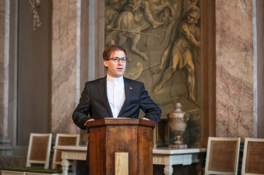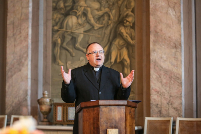 Császár István néhány mondatban visszatekintett az ELTE jogelőd intézményének 1635-ös nagyszombati megalapítására, majd további, részben szombathelyi, részben kőszegi és zalaegerszegi példákkal igazolta, hogy az egyházi szemléletben régen és ma egyaránt mennyire fontos szerepet kapott az oktatás, a kultúra ügye.