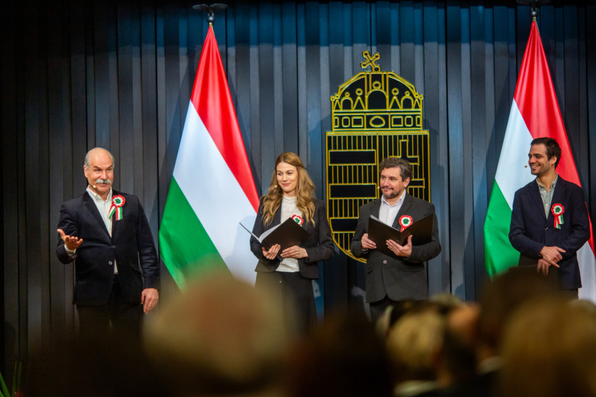 Csák János kultúráért és innovációért felelős miniszter, Vitályos Eszter, a Kulturális és Innovációs Minisztérium parlamenti államtitkára és Závogyán Magdolna kultúráért felelős államtitkár állami kitüntetéseket adott át március 15-e alkalmából a Pesti Vigadóban március 14-én, csütörtökön.