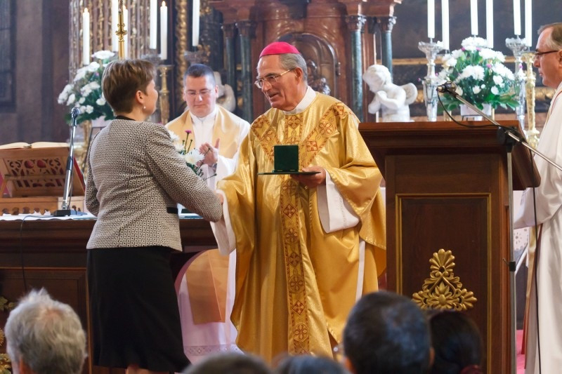 A szentmise végén ünnepélyes körülmények között került sor a Szent Gellért-díjak átadására, melynek ezüst fokozatát Baloghné Virágh Gertrúd dajka (Apor-óvoda), Gulyás Zsoltné tanító (Rákóczi-iskola), Hegedüsné Nagy Ilona tanító (Szent Anna-iskola), Kollmanné Haluska Viktória óvónő (Szent Margit-óvoda), Mezeiné Klausz Mariann gazdasági vezető (Hildegard-óvoda), Milchram Bernadett tanító (Szent Orsolya-iskola), Németh Zoltán karbantartó (Páli Szent Vince-iskola), Prikler Sándorné dolgozó (Prohászka-iskola), Szűcs István tanár (Apor-iskola), Tompa Ferencné óvodapedagógus (Prohászka-iskola), Tóthné Gálfi Éva tanár (Szent Anna-iskola), Túróczi Zoltánné tanár (Apor-iskola), valamint Vargyas Imréné tanár (Páli Szent Vince-iskola) vehette át.