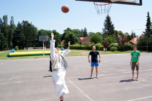 Ebéd után az édesanyák és a szerzetesnők csaptak össze egy kosárlabda-mérkőzésben. Ezt a sokak által nagyon várt atyák-apák focimeccs követte, melyen Veres András megyéspüspök végezte el a kezdőrúgást.