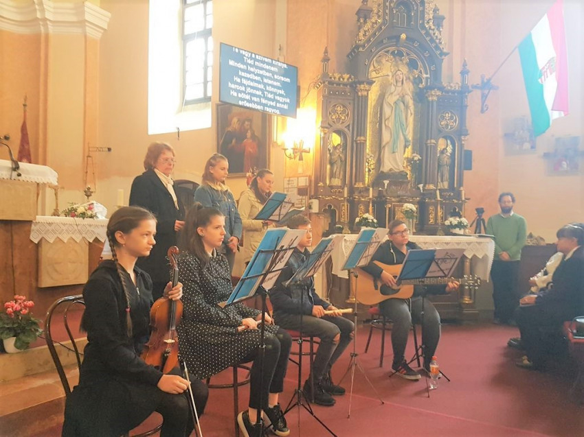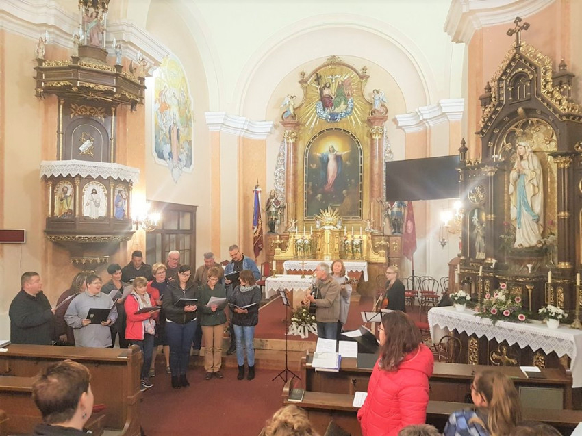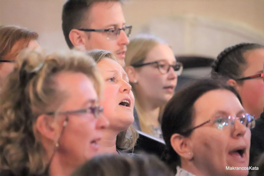 Gyürü Ferenc lövői plébános frappáns köszöntőjében életünk igazi dallamának megtalálására buzdított, majd maga is beállt a házigazda kórus tagjai közé, hogy énekével és zongorakíséretével közreműködjön.