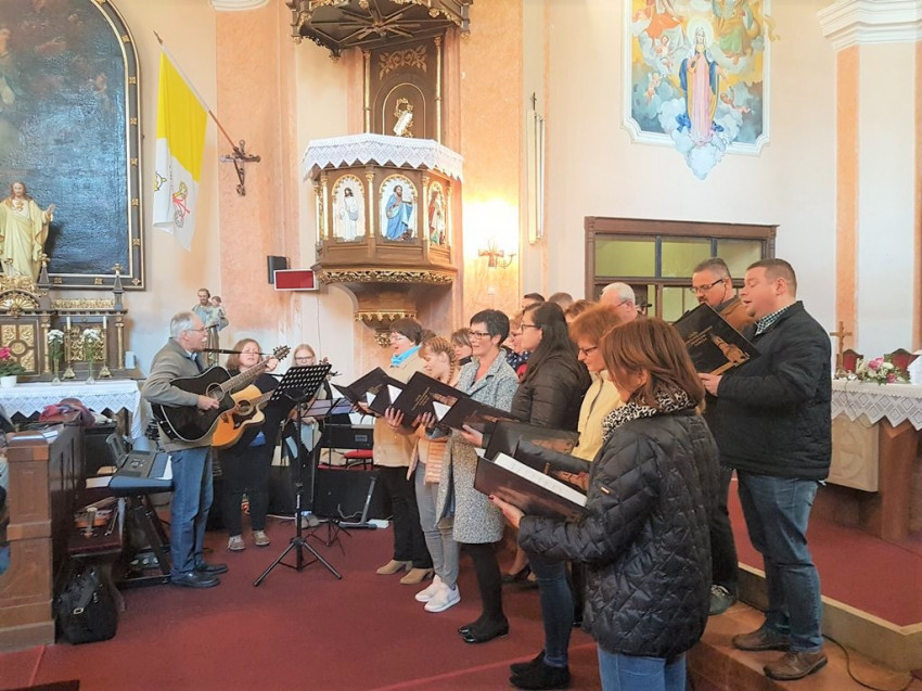 A Győri Egyházmegyében keresztény könnyűzenével szolgáló kórusok számára megrendezett találkozó kezdetére megtelt a lövői Nagyboldogasszony-templom, ahol a résztvevők együtt elimádkozták az Úrangyala imádságot.