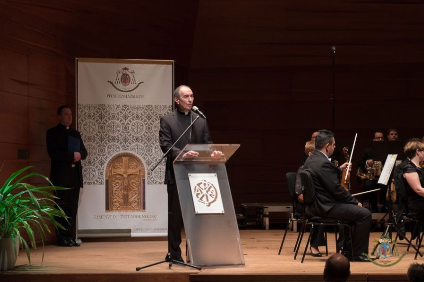 Udvardy György püspök beszédében megköszönte a Pécsi Egyházmegye partnereinek, az intézmények dolgozóinak, a közösségeknek az elmúlt évben végzett munkát, szolgálatukat.