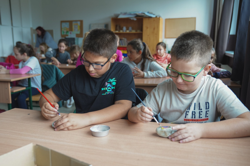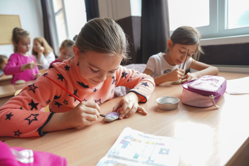 Kora délután, amíg a zsűri értékelt, külön foglalkozásokkal készültek a gyermekek számára. A kisebbeket kézműveskedni hívták, ahol dekupázstechnikával kavicsokra – mint ahogyan a tízparancsolat két kőtáblára íródott – ragasztották fel a kőtáblákat megjelenítő rajzokat.
