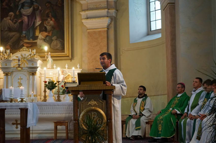 A délutáni szentmisét Schönberger Jenő szatmári főpásztor tartotta, aki bevezető gondolataiban a mottóra utalva hangsúlyozta: csak akkor lehetünk a világ világossága, ha beengedjük a szívünkbe Jézust és vele, belőle élünk, mert ő a világ világossága. A szentmisén közreműködött Baumgartner Márk kaplonyi kántor által vezetett gyermekkórus.