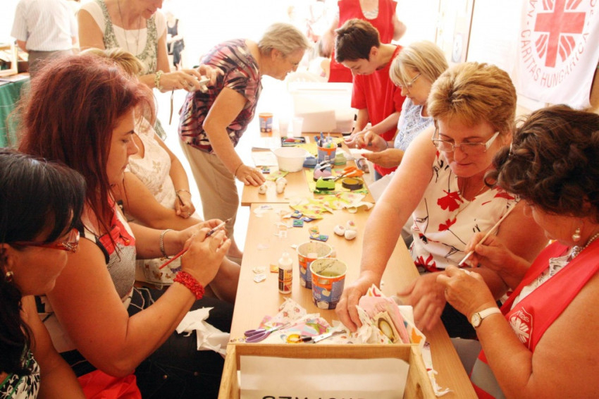 Az előadások után a karitász tagok kötetlen beszélgetéseken osztották meg egymással a tapasztalataikat, közben kézműves foglalkozáson is részt vehettek, amelyhez a Váci Egyházmegye munkatársai adtak ötleteket.