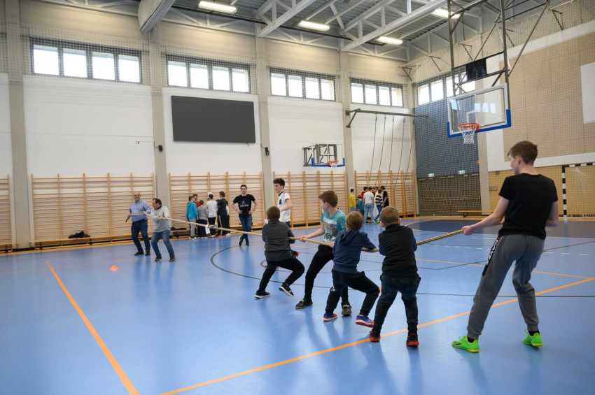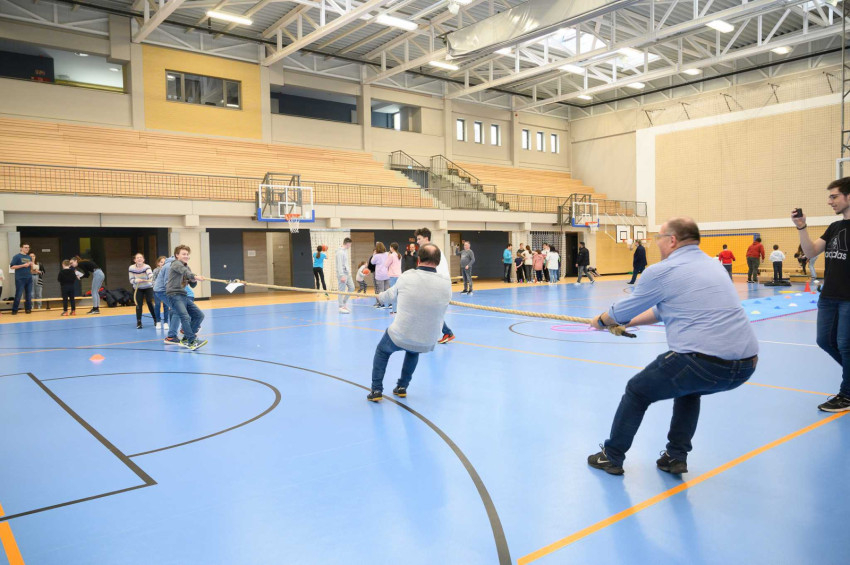 Játékos vetélkedővel folytatódott a program: többek között falmászás, kapura rúgás, kosárra dobás, kislabdadobás, miniteke és kötélhúzás várt a csapatokra.