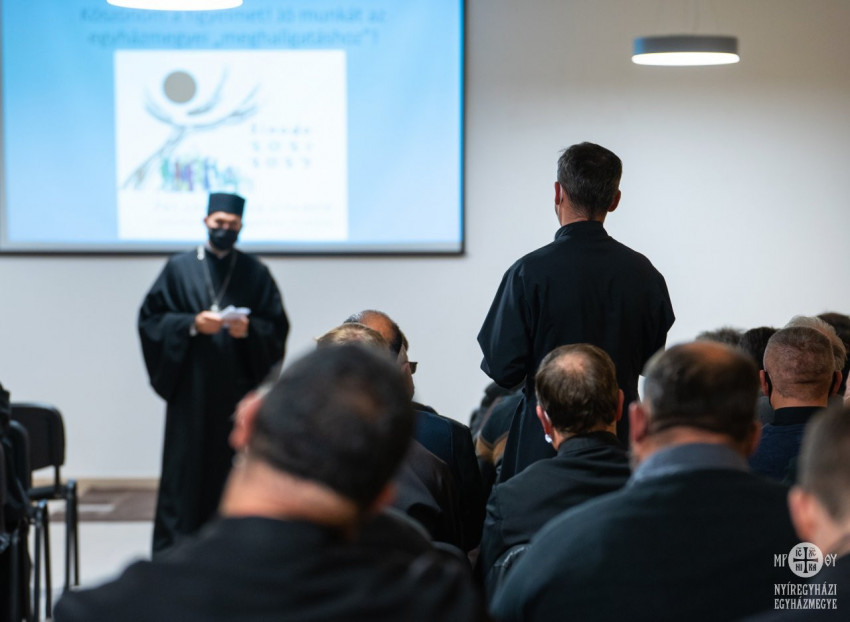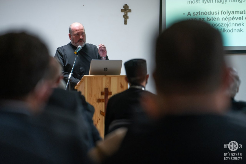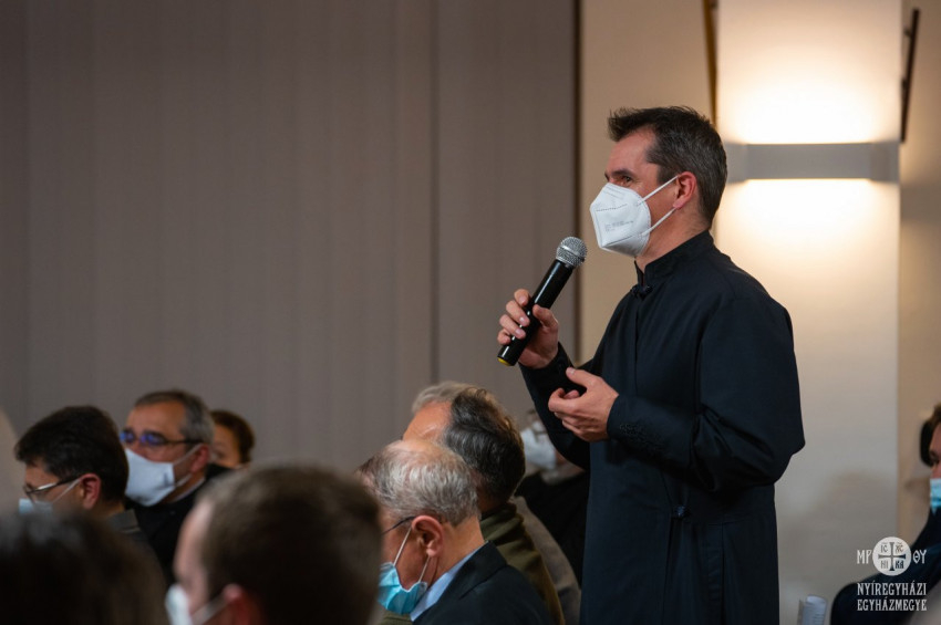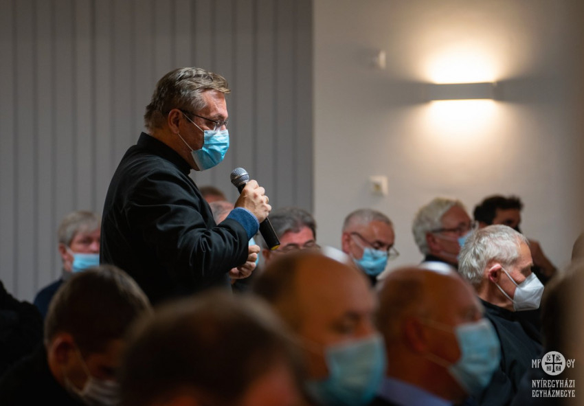 Polgári László kálmánházi parókus a szinodális út konzultációs megvalósíthatóságáról beszélt. Gyakorlati útmutatókat és javaslatokat vázolt paptestvérei számára, hiszen tíz feltárandó tétel szerteágazó témaköreiről kell megkérdezni rövid időn belül kinek-kinek a maga közösségét.