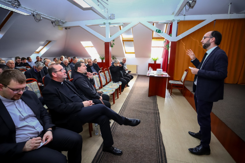 A papság találkozója a II. Rákóczi Ferenc Katolikus Technikumban folytatódott, ahol két előadást hallgathatott meg a főegyházmegye klérusa.