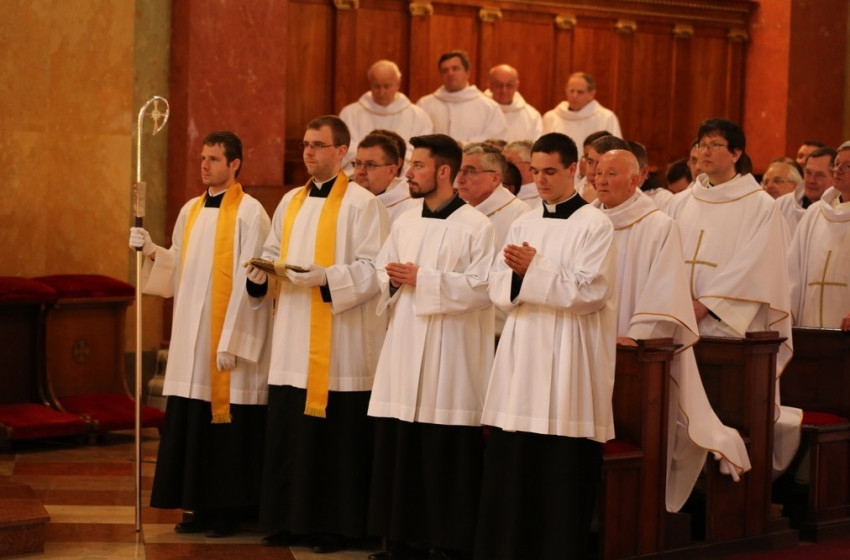 A találkozó csúcspontja az ünnepi szentmise volt, amelyen a főegyházmegye papjai és kispapjai a szentélyben foglaltak helyet Ternyák Csaba érsek körül.