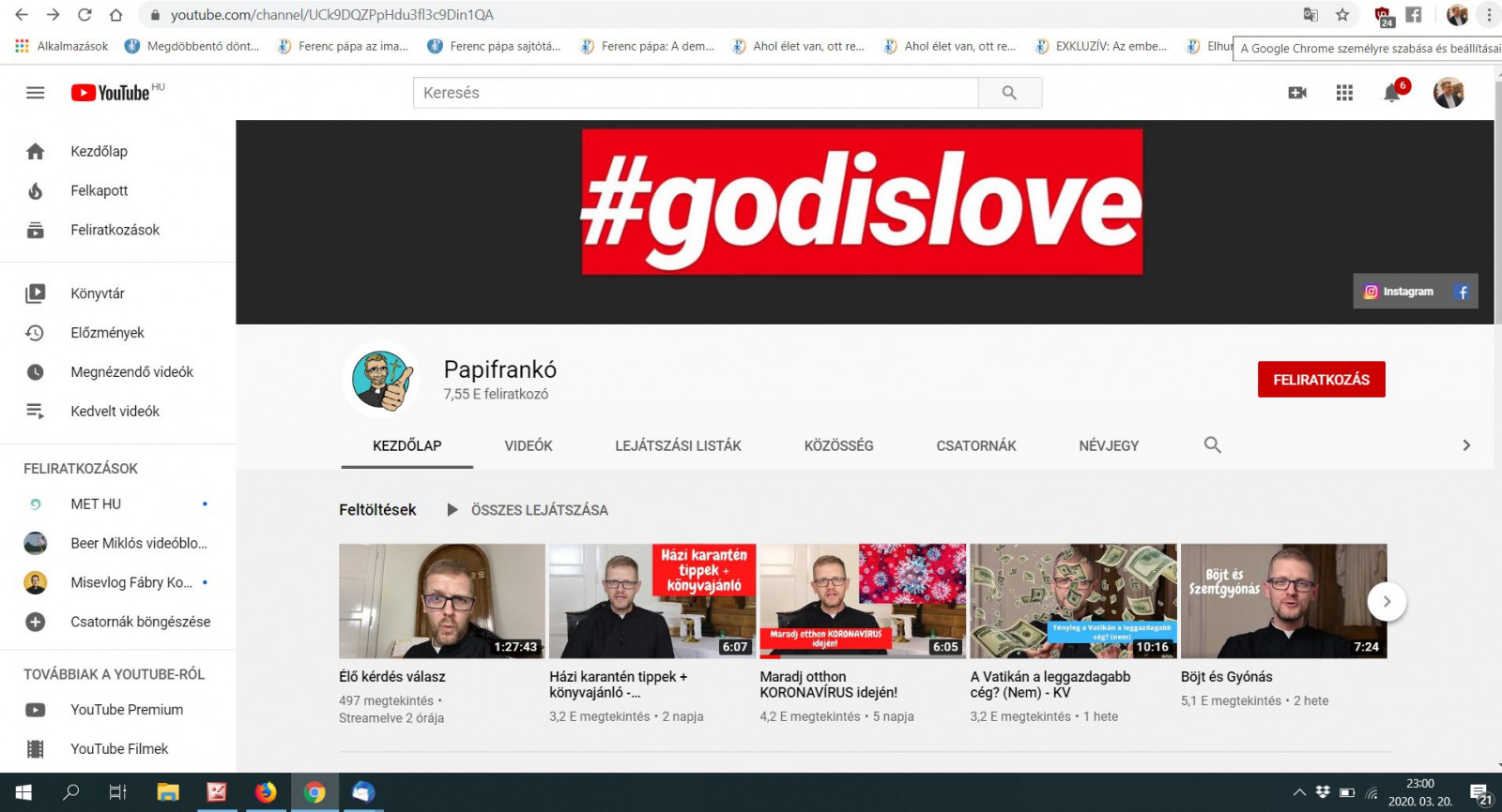 Nézzük például a YouTube-ot! Ahogy említettem, ez a videómegosztó oldal talán a legismertebb platform, jó tudni, hogy minden gmailes címhez tartozik egy azonos című YouTube-csatorna. Annyi a nehézség, hogy itt az élőzéshez minimum 1000 követő szükséges, de ez egy plébánián nagy eséllyel megoldható. Ha az asztali gépen belépünk a Gmail-fiókba, jobb oldalt felül, a profilképünk mellett találunk egy kilenc pontból álló négyzetet. Arra rákattintva előjönnek a fiókunkhoz tartozó applikációk. Ha rákattintunk a YouTube-ikonra, máris a saját csatornánkban vagyunk, ahol szintén jobb oldalt felül látunk egy kameraikont. Arra kattintva mehet is az élőzés! Mobilon is egyszerű, csak meg kell nyitnunk a YouTube-alkalmazást, és szintén jobb oldalt felül meg fogjuk látni ugyanazt a kameraikont. Kattintás után néhány dolgot be kell állítanunk (láthatóság, gyermekeknek szóló tartalom-e, illetve el kell dönteni, hogy akarjuk-e, hogy tudjanak megjegyzéseket írni a nézők adás közben, stb.), majd készül egy borítókép, és indul is az élő adás. Jó hittanóra lehet, ha a fiatalok kérdezhetnek, mi pedig a videóban válaszolunk, vagy a szentmise-közvetítés alá írhatják a miseszándékot. Az adás végén az adott platform általában felajánlja, hogy tartsuk meg a videót, vagy töröljük. Én a miseközvetítést törölni szoktam, mert szerintem a szentmise élő műfaj, élő találkozás az Istennel, nem felvételre való, de ez már egy másik cikk témája lehetne.
