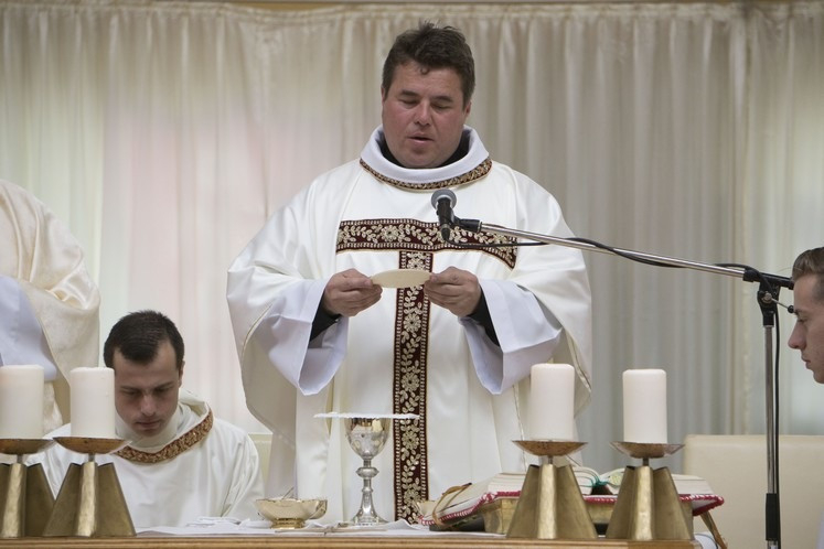László Attila homíliájában a találkozó résztvevőit a „jelenkor emmauszi tanítványainak” nevezte, akik emlékeznek és rácsodálkoznak arra a nagy igazságra, hogy Jézus halála és feltámadása a felülmúlhatatlan szeretet eseménye. Ennek erejéből él és ünnepel Egyházunk, élünk és táplálkozunk mi magunk, és ebben találjuk meg életünk, hivatásunk, szolgálatunk értelmét is. A megélt hit, az Élet feletti öröm továbbadására hívta a plébános a profán teret, a sportcsarnokot imával és dallammal megszentelő esemény résztvevőit: „Vigadjon a föld, ünnepeljen az egész látható és láthatatlan világ, mert örökkévaló örvendezés az, hogy Krisztus feltámadt! Valóban feltámadt!”