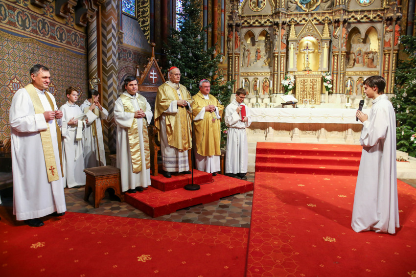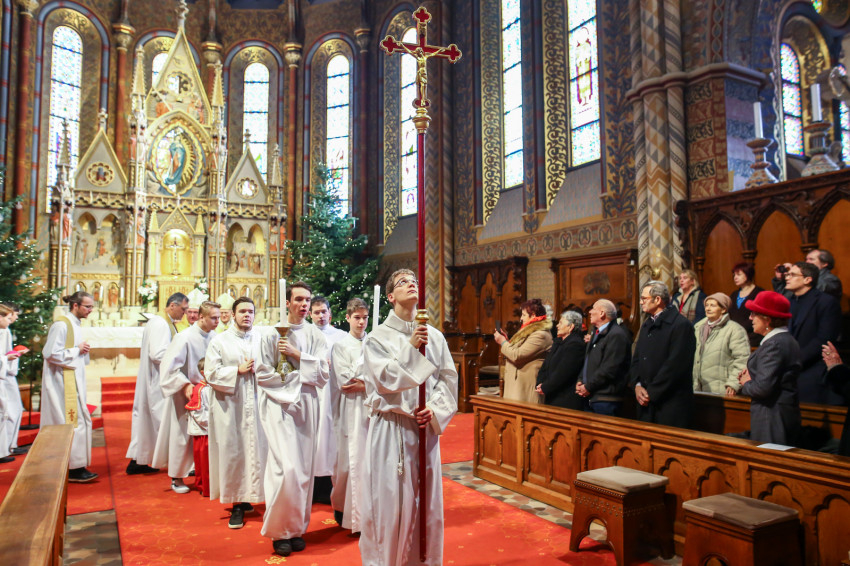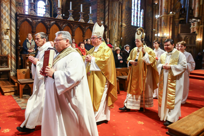 A szentmise elején Csapody Gergely a Mátyás-templom egyik vezető ministránsa köszöntötte a jubilánsokat „annál az oltárnál, amelynél egykor Szent II. János Pál pápa is imádkozott”.