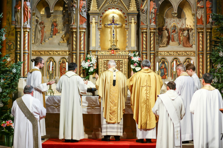 Krisztus feltámadt, és minket is örök életre, örök boldogságra hív – folytatta homíliáját a bíboros. Megnyitotta szabad utunkat az Atyához. Amikor most hálát adunk azokért a kegyelmekért, amelyeket a szentelésben kaptunk, és amelyeket – azt hiszem, András testvérem nevében is mondhatom – sokszor éreztünk is a szolgálatunk során, egyúttal kérjük Isten különleges segítségét, mert ma annak, aki az evangéliumot hirdetni akarja, nem könnyű a helyzete. Nem csak azért, mert a kereszténység a legüldözöttebb vallás, nem csak azért, mert sokféle támadás, megannyi bonyolult helyzet adódik a világban, hanem azért, mert a szellemi környezet kezd csalókává válni. Sokan elbizonytalanodnak a hagyományosan kereszténynek mondott országokban is, és hallgatnak azokra a szirénhangokra, hogy becsüljük meg az összes vallást a földön, hiszen az emberek mindenütt jó szándékkal keresik az igazságot, a különféle vallások pedig csupán valamiféle kulturális, történelmi formái az emberiség nagy közös felismeréseinek.