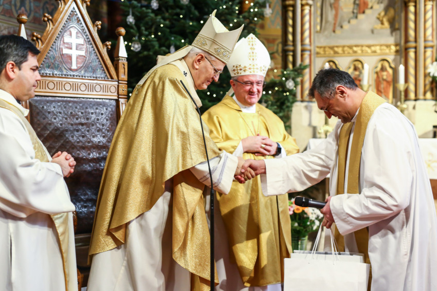 A szentmise végén Süllei László, a Mátyás-templom plébánosa köszöntötte és ajándékokat adott át a jubilánsoknak.