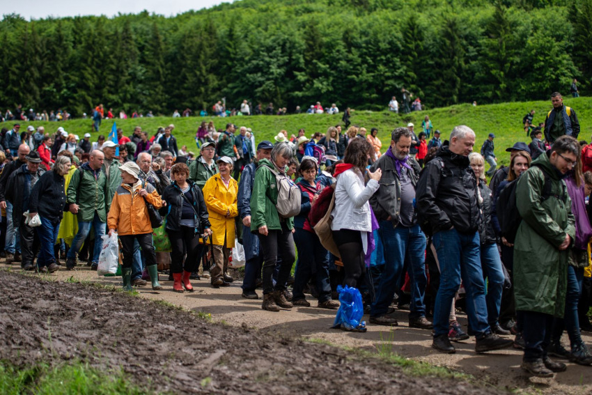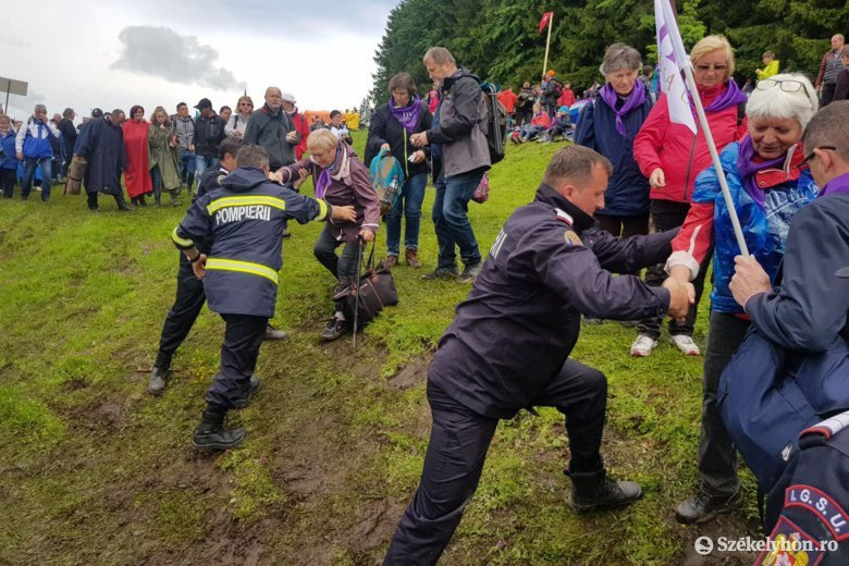 Az egész napot jellemző fegyelmezettséggel és visszafogottsággal vonultak le a zarándokok – a sáros, csúszós utakon egymást segítve haladtak.