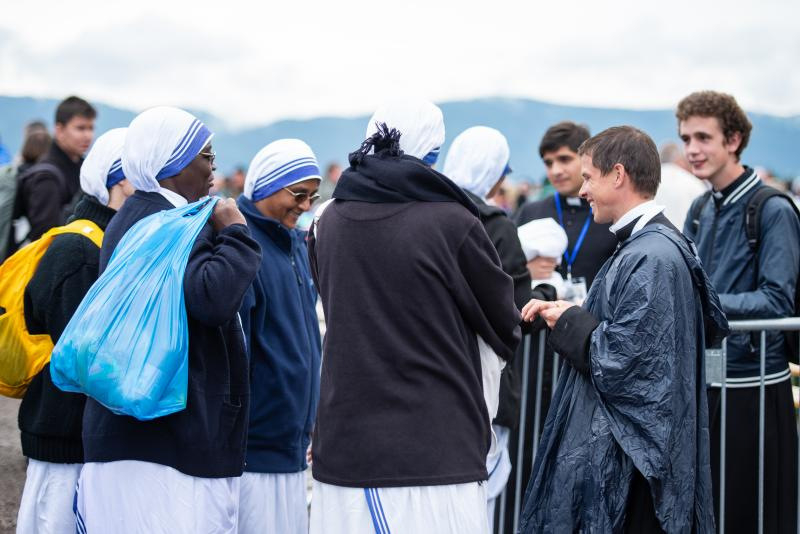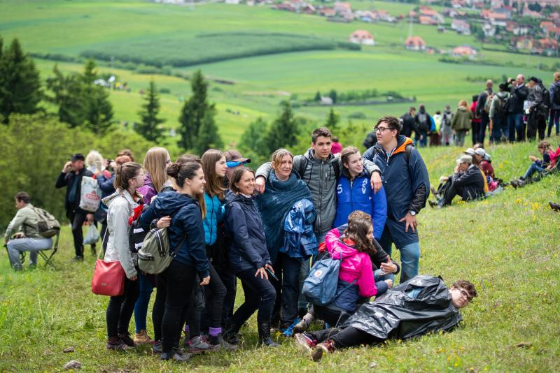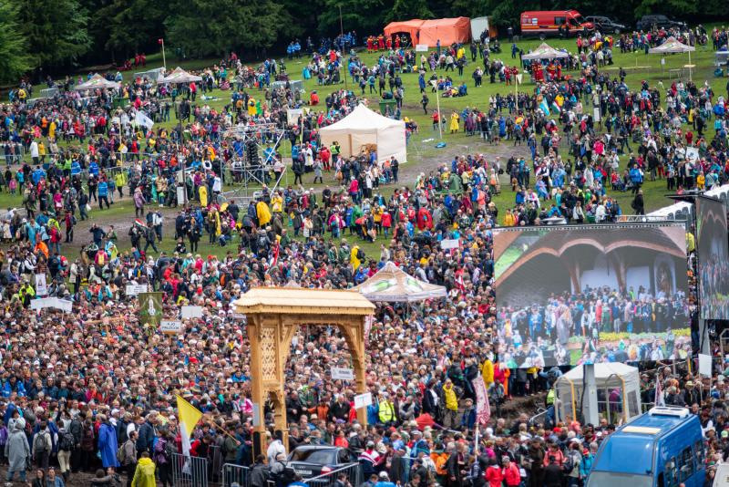 A reggeli órákban zuhogott az eső, majd Ferenc pápa érkezésére elállt, kora délutánra pedig kisütött a nap a csíksomlyói nyereg fölött.