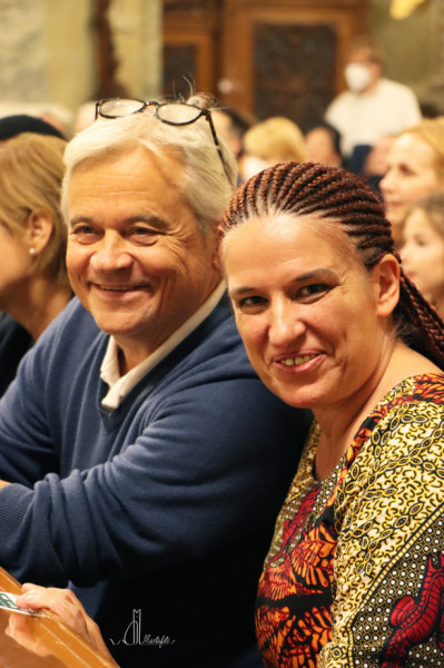 A jótékonysági esten jelen volt Valerian Okeke, a nigériai Onitshai Főegyházmegye érseke, Basil Ekwunife, a főegyházmegye irodaigazgató-helyettese, Izunna Okonkwo, az onitshai Borromei Szent Károly Kórház igazgatója, az Eucharisztia és a világ éhezői című könyv szerzője és négy nigériai ösztöndíjas lány, akik az idei tanévben Pécsett és Szegeden kezdik meg egészségügyi tanulmányaikat. Jelen volt az Afréka Alapítvány megálmodója, „Afréka”, azaz Fodor Réka missziós orvos és az alapítvány tagja, Csókay András idegsebész. A jótékonysági estet online közvetítettük YouTube-csatornánkon.