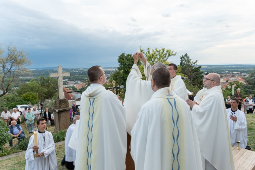 Havas Boldogasszony római üzenete az volt, hogy építsenek templomot ott, ahol a Szűzanya mondta. A helyet az Úr jelölte ki a csodával, de az építés az ember feladata volt. A Jóisten felszabadítja az embert, rádöbbenti arra, mit kell tennie, aztán a maga erejéből és szabadsággal cselekedve bazilikát épít Rómában és itt, Pécsett, a város felett, és megmutatja a hit titkait – mutatott rá a segédpüspök.