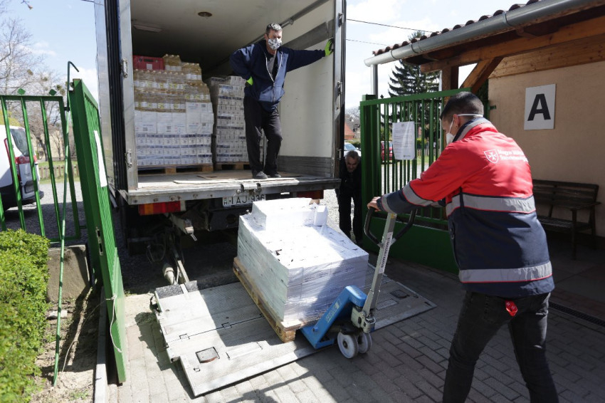 A terv szerint Pávics Lászlóval mennénk vissza a belvárosba, hogy még ott is házhoz vigyünk néhány ebédet, de mint a sofőrök mondták, gyorsan változnak a feladatok. Teherautó gördül a kapu elé, a már készleten lévő burgonya, hagyma és tartós élelmiszer mellé újabb szállítmány szárazáru érkezik. Az élelmiszerekből és tisztítószerekből a bajba kerülő családok számára állítanak össze csomagokat. Az akciószerű, hagyományos adománygyűjtés és osztás országszerte szünetel, ezek helyét minden esetben az egyéni segítségnyújtás vette át.