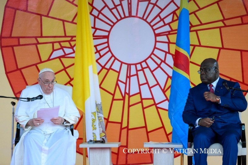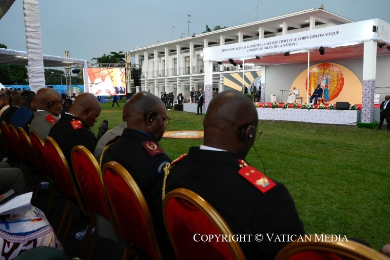 Szeretettel üdvözlöm Önöket, és köszönöm Őexcellenciája, az elnök úr kedves szavait. Örülök, hogy itt lehetek ezen a gyönyörű, hatalmas és gazdag földön, amely északon magában foglalja az egyenlítői erdőséget, középen és dél felé a fennsíkokat és az erdős szavannákat, keleten a dombokat, hegyeket, vulkánokat és tavakat, nyugaton pedig a nagy víztömegeket, az óceánba ömlő Kongó folyóval. Országukban, amely olyan, mint egy kontinens Afrika nagyobb kontinensén belül, úgy tűnik, hogy az egész föld lélegzik. Bár ennek a zöldellő tüdőnek a földrajza oly gazdag és változatos, történelme nem volt hasonlóan áldott.