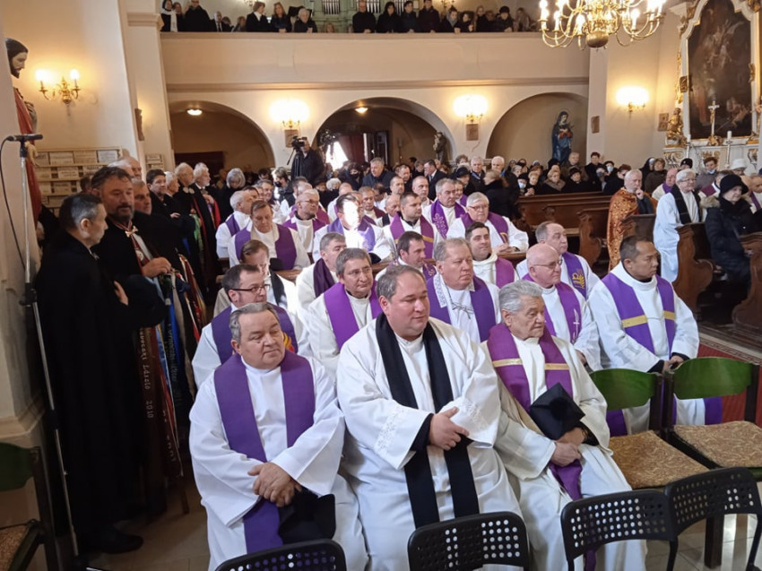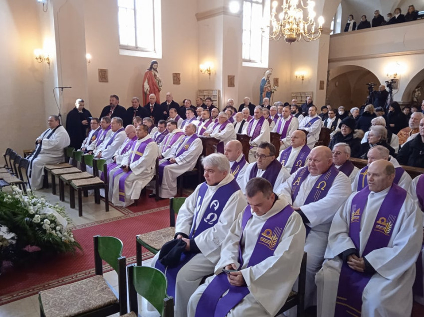 A gyászmisét Ternyák Csaba egri érsek mutatta be a miskolc-diósgyőri plébániatemplomban, koncelebrált több püspök és számos paptestvér.