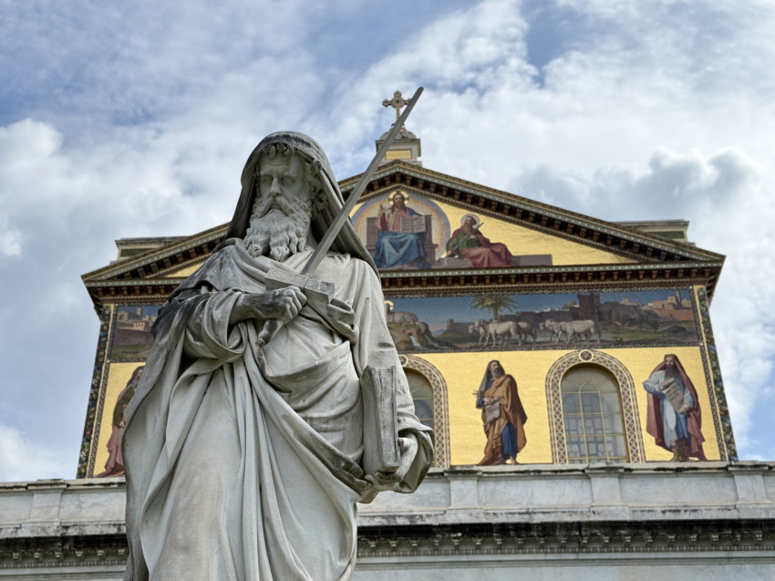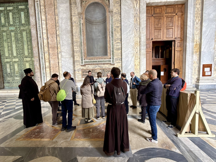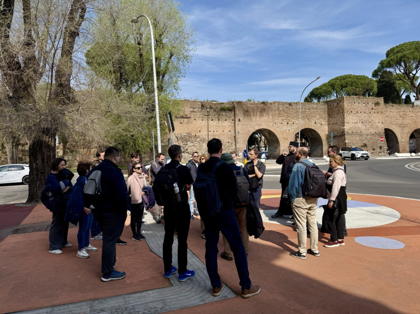 A program pénteken este kezdődött: együtt jártuk végig a keresztutat a Szent István Ház kertjében felállított állomások mentén. Másnap a Szent Péter-bazilika Magyarok Nagyasszonya-kápolnájában szentmisével indítottuk a zarándoklatot, majd innen a Falakon kívüli Szent Pál-bazilikához mentünk.
