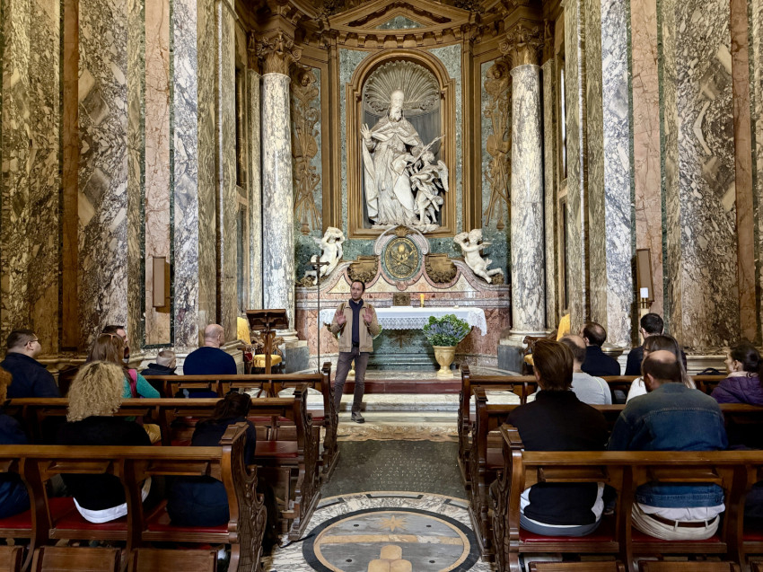 Az egyes állomásokon Terdik Sebestyén, a római Szent István Ház igazgatója ismertette a templomok történetét és főbb látnivalóit.