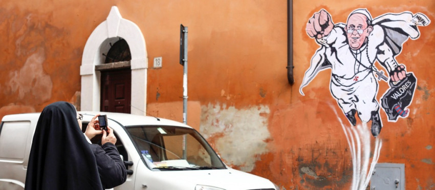 Igen híressé vált többek között Mauro Pallotta 2014-ben készített Superpope-graffitije: a Borgo Pio negyedben szuperhősként jelent meg a Szentatya repülő alakja egy ház falán.