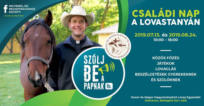 A következő családi nap a lovastanyán augusztus 24-én lesz, részleteket az esemény Facebook-oldalán találnak, ugyanitt érhető el a regisztrációs űrlap.