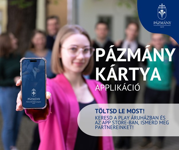 A Pázmány Kártya applikáció letölthető az App Store-ból és a Google Play áruházból Pázmány Kártya néven.