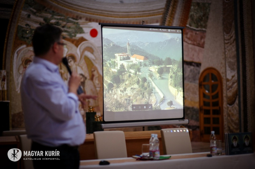 A könyvbemutató után Kuzmányi István utazási élményeit megosztva vetített képes előadást tartott Libanon szent helyeiről: Harisszáról, Annayáról, a Kadisa-völgyről (Szentek völgye) és Isten Cédrusainak Erdejéről. Az Izrael, Szíria és a Földközi-tenger által határolt ország területe mindössze valamivel több mint tízezer négyzetkilométer. Két nagy hegyvonulat határozza meg, a Libanon-hegység és a szír határon húzódó Antilibanon. A Libanon-hegység legmagasabb csúcsa háromezer méter fölé emelkedik. A Szentek völgye szomszédságában született és ennek környékén élt Szent Charbel.